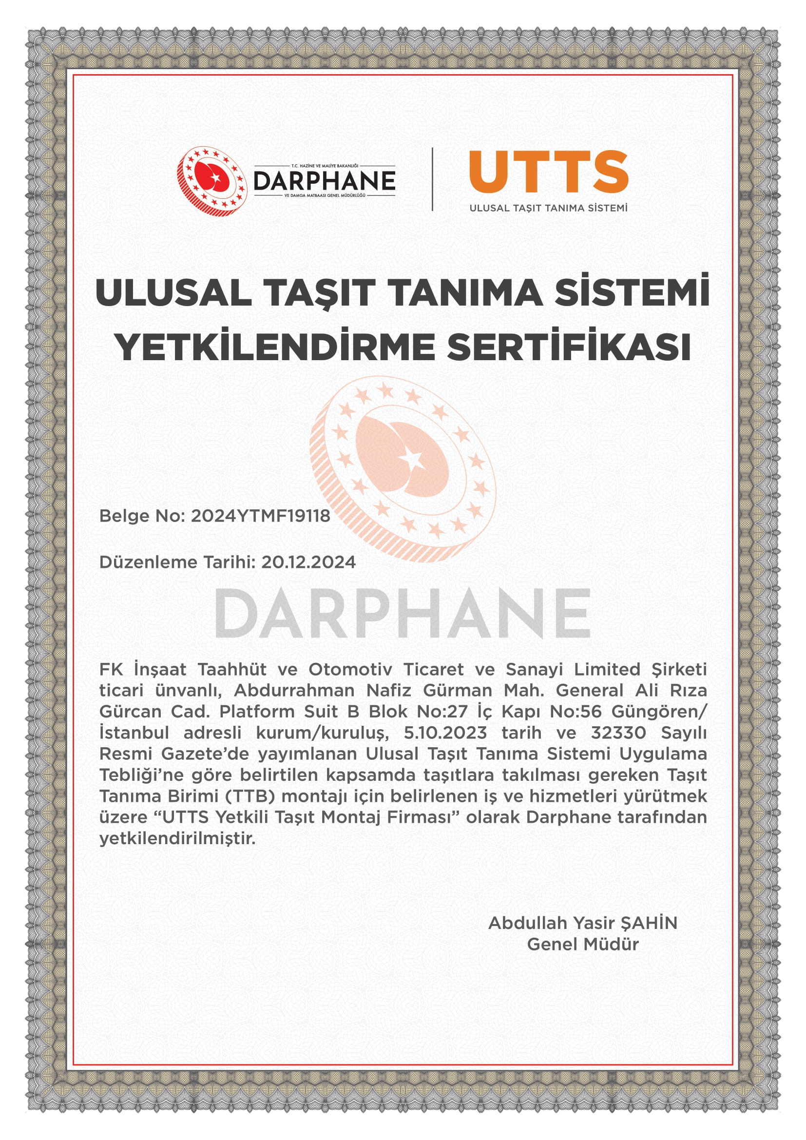 Araçlarınıza entegre edilen UTTS sistemi, bilgilerinizi Tabanca İletişim Modülü (TİM) aracılığıyla Darphane sisteminde doğrular.